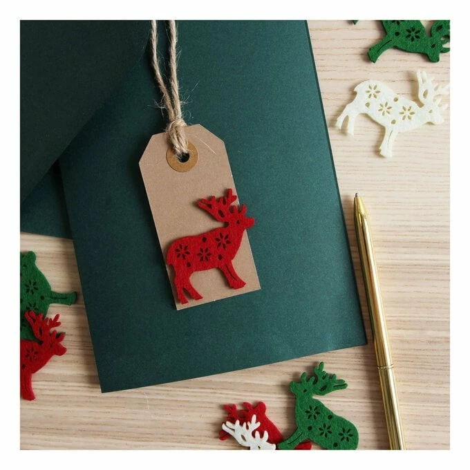 These Christmas Reindeer Felt Embellishments are a great way to embellish your Christmas crafts with classic festive details! In traditional festive red and green, these designs feature stunning mini cut-outs โ perfect for standing out against a contrasting backdrop.