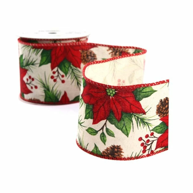 Poinsettia Wire Edge Ribbon 63mm x 3m