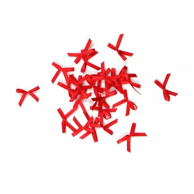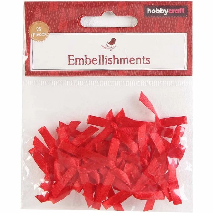 There are 25 red satin ribbon bows included and each one measures approximately 2.5 x 3.5cm. Easily add these with a small dab of glue for a festive flourish that is certain to stand out.
