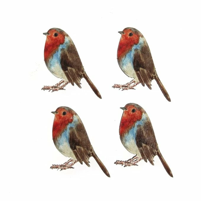 Robin Wooden Toppers 4 Pack