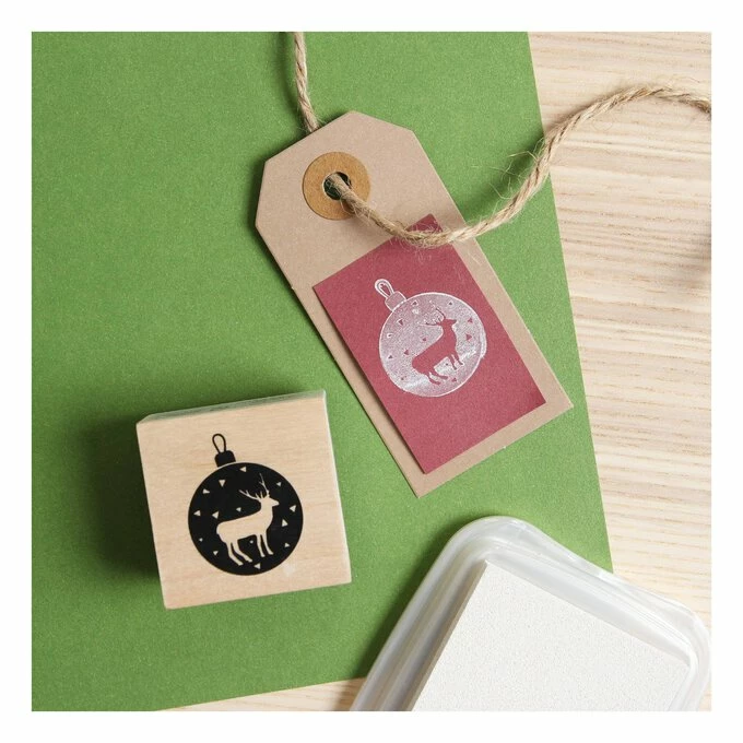 Add fun, festive flourishes to your Christmas crafts with this Stag Bauble Wooden Stamp!